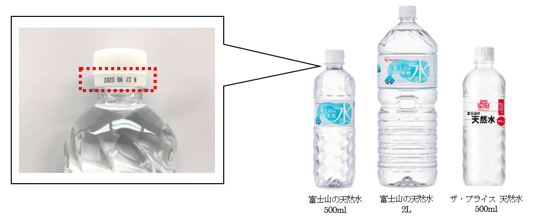 現在までに本件に起因する健康被害は確認されておりませんが、万全を期すために、同一ラインで製造した「ザ・プライス 天然水」も含め、下記の商品を自主回収させていただきます。